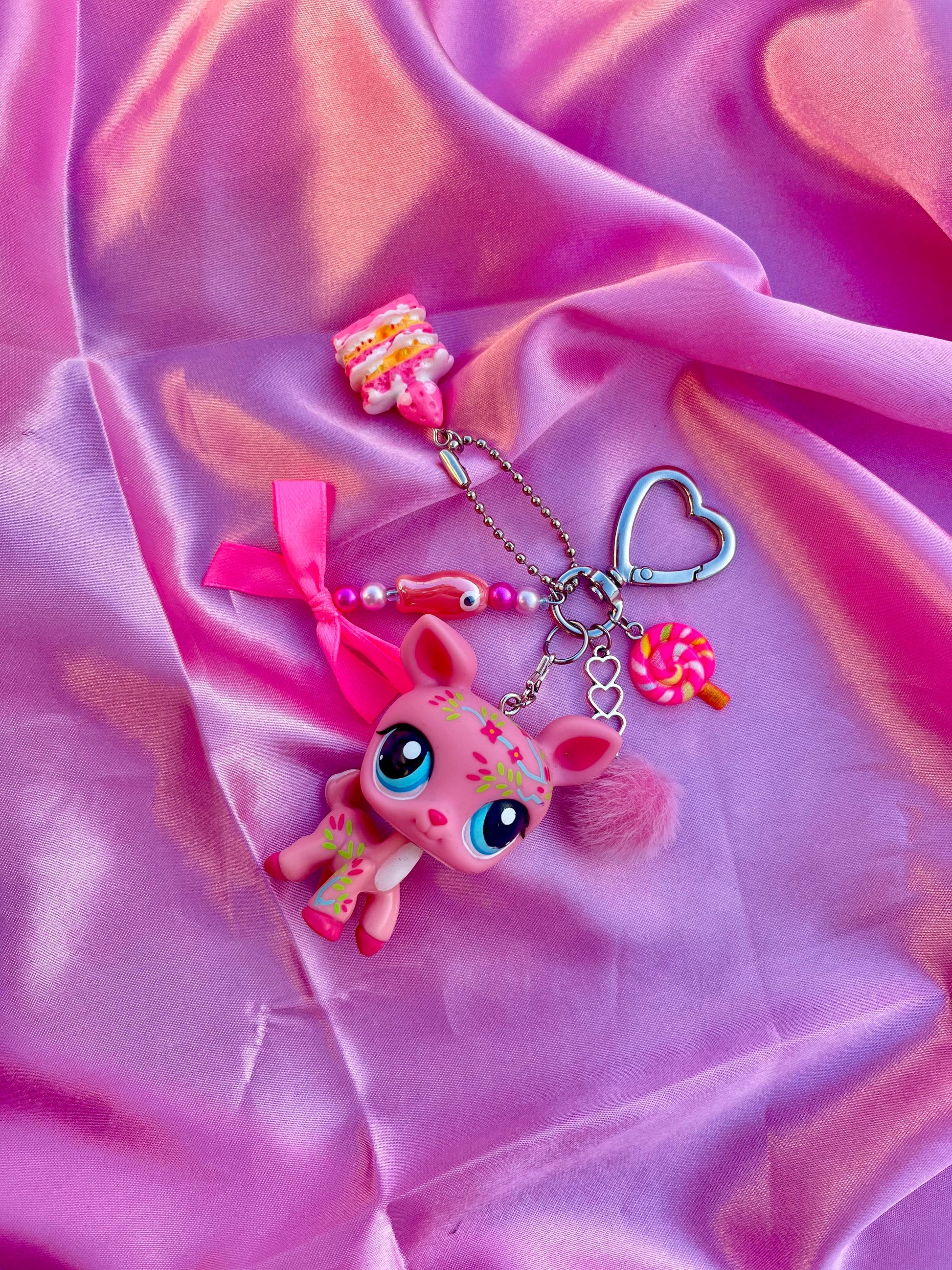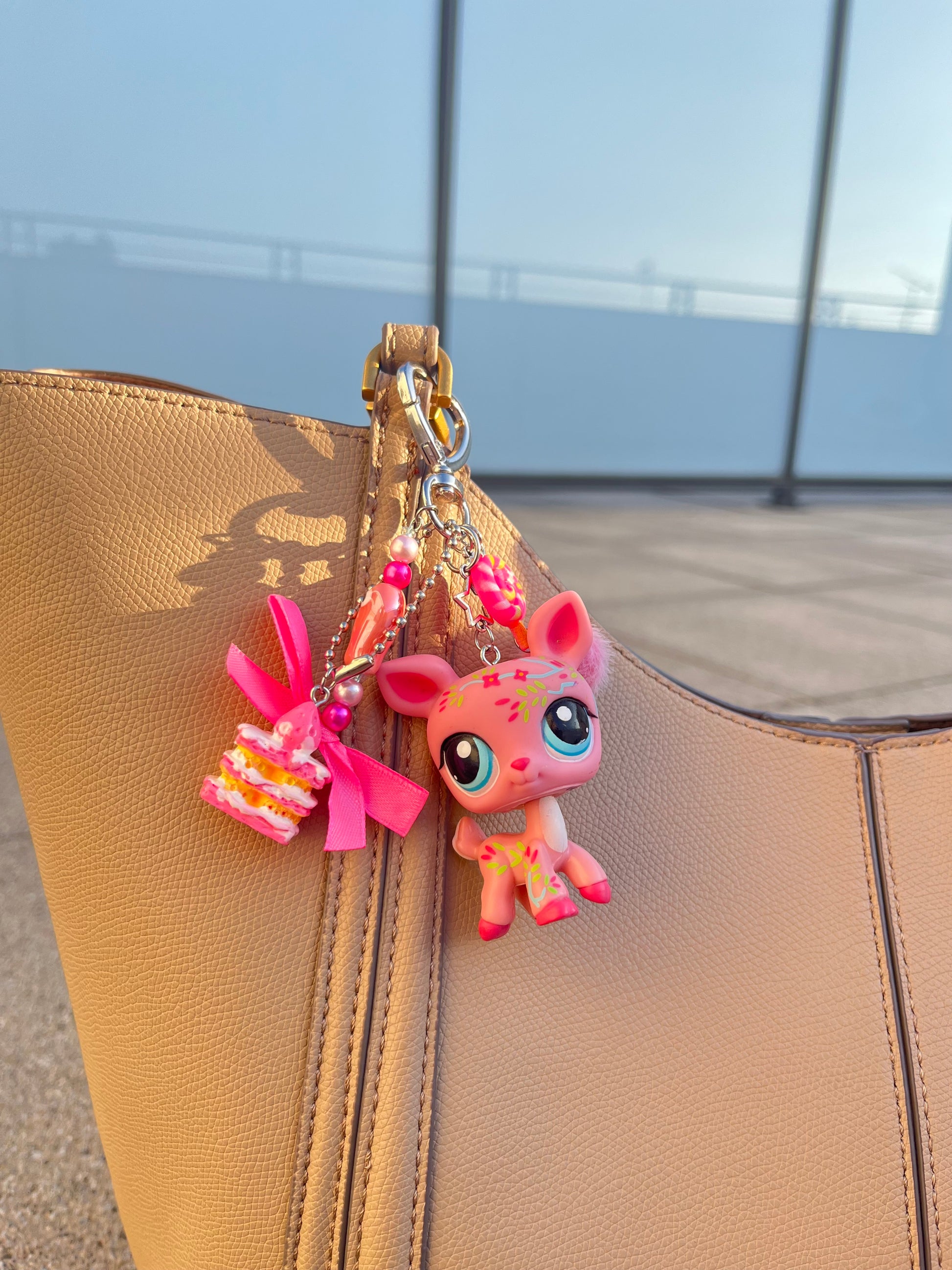 Carlita, la petite biche rose, adore se pavaner sur ton sac. Toujours élégante et pleine de charme, elle attend sa future adoptante avec impatience ! 🦌💕