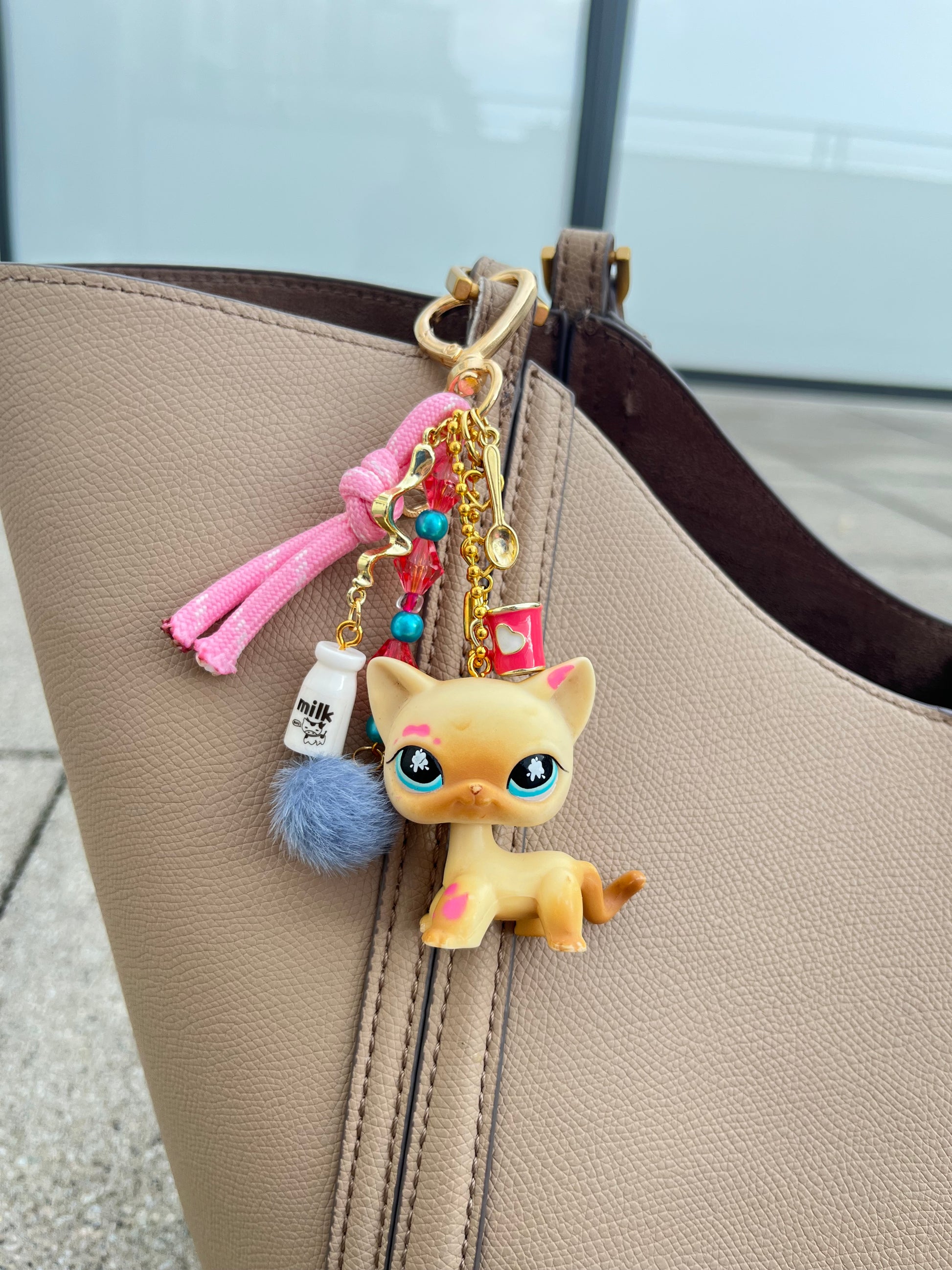 Avec ses taches roses et son regard tendre, Carlota fait fondre tous les cœurs 💕 Un charme tout doux à accrocher à ton sac 🐾