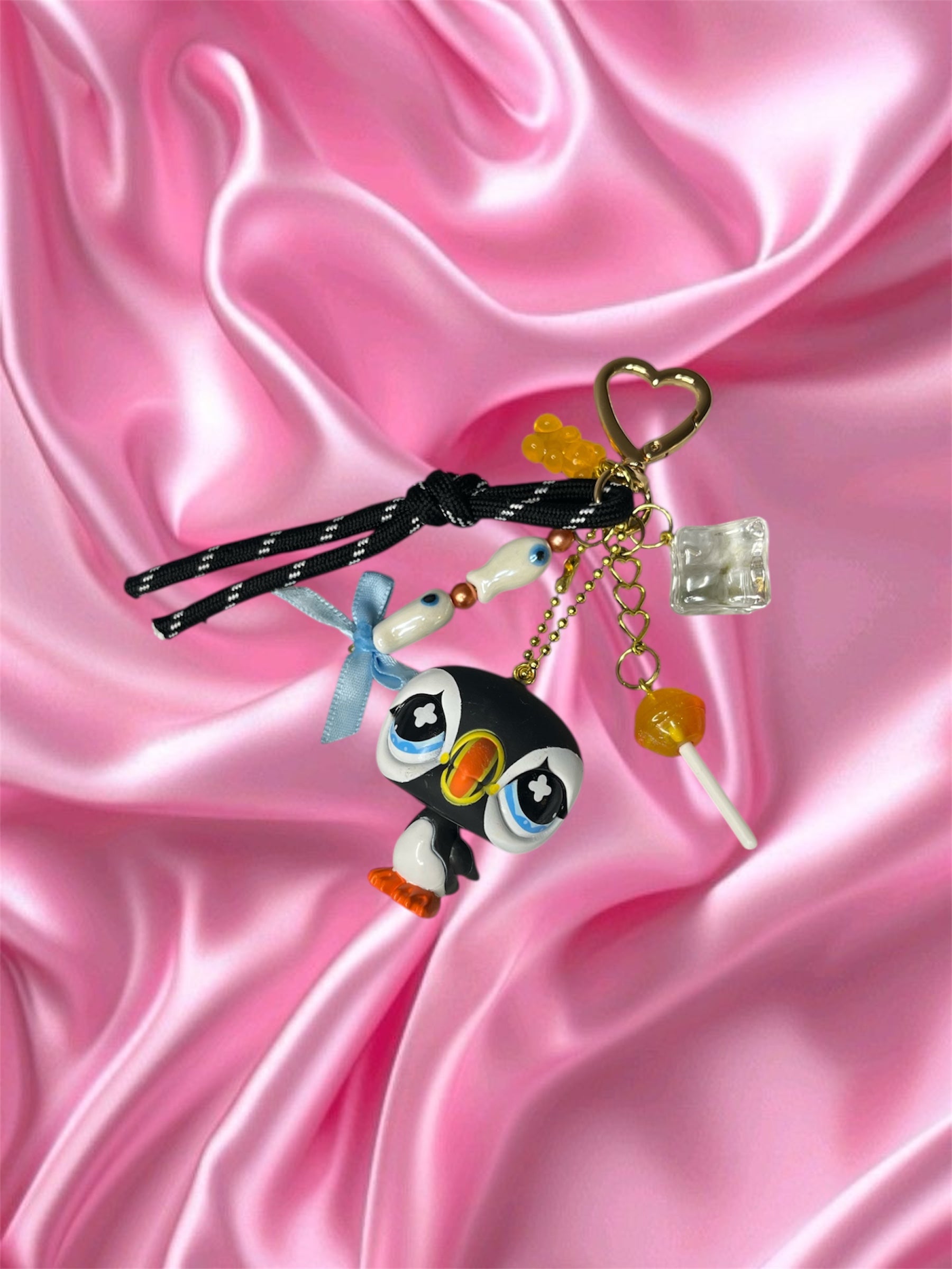 MatĂ©riaux : figurine dâoccasion (plastique / PVC / rĂ©sine selon piĂšce), anneau/maillon acier inoxydable, tige/rivets mĂ©talliques ou mousqueton selon modĂšle. Chaque crĂ©ation est complĂ©tĂ©e avec un ou plusieurs charms dĂ©coratifs et perles.